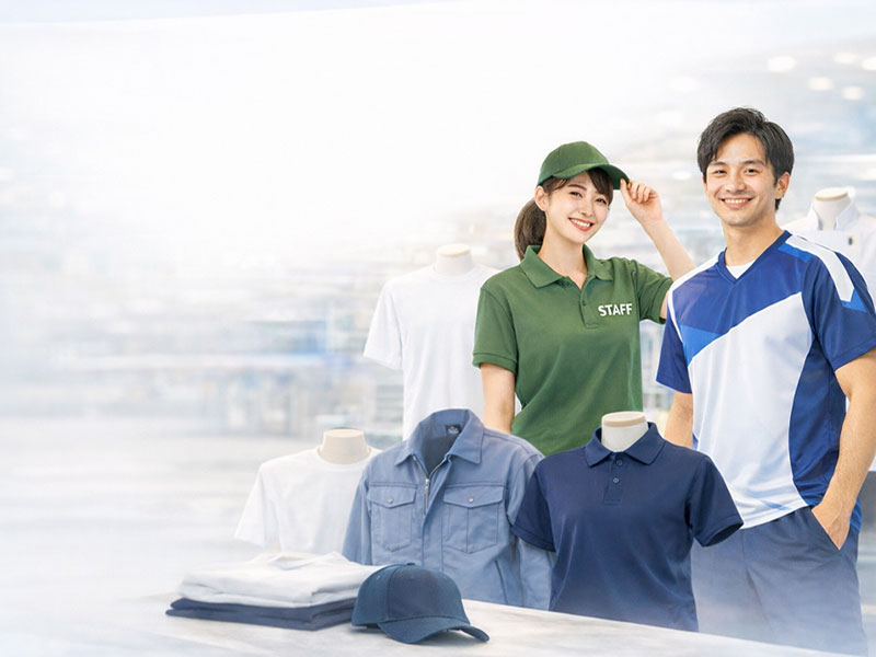 飲食店スタッフユニフォーム、イベントスタッフTシャツ、会社の作業服、チームウェアなど様々な用途に対応しています。